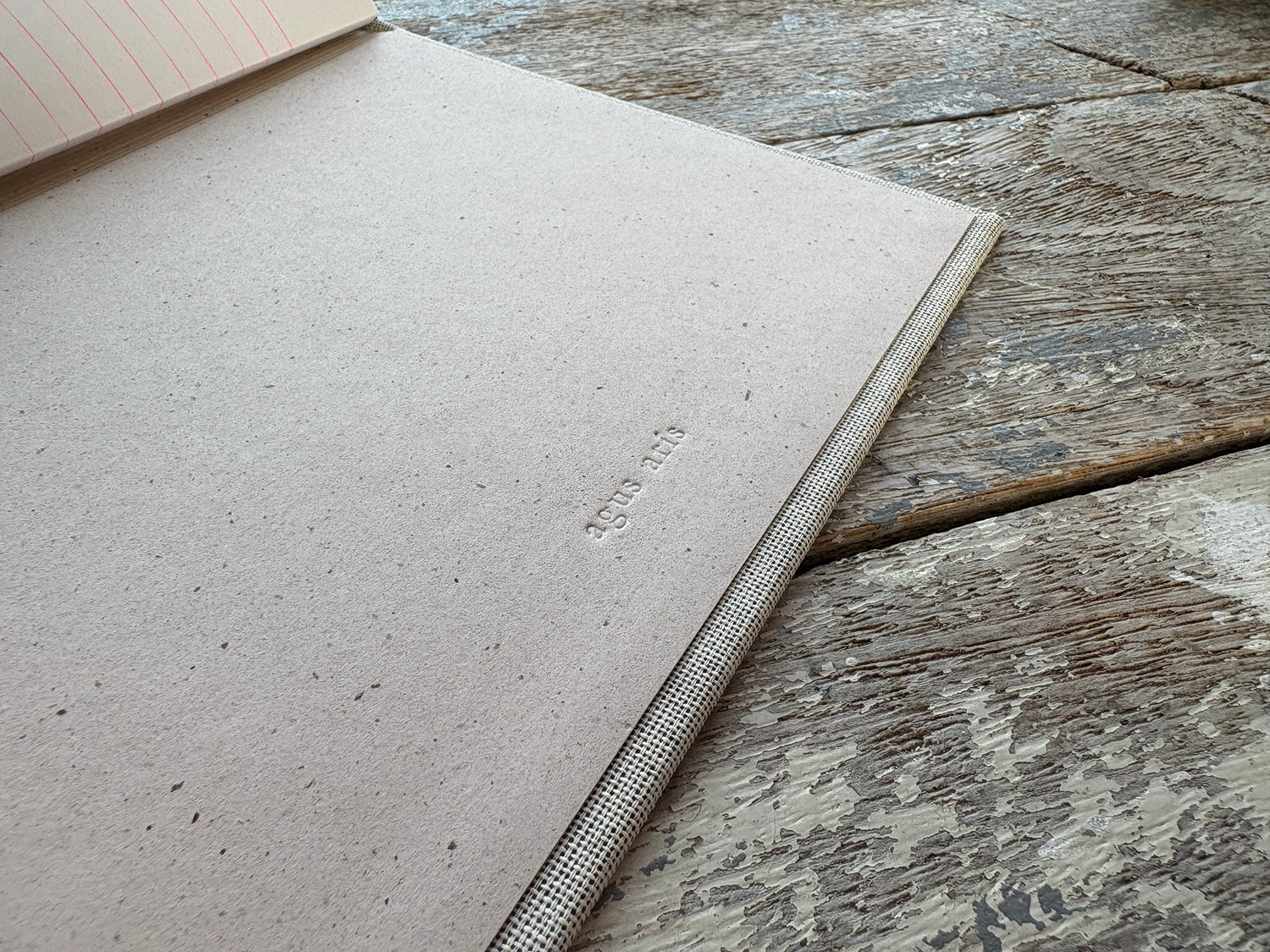 handmade by Barbara Hubert Bookbinders in Cork City. designed from recycled paper and book cloth for durability over a lifetime of projects, planning, failure and success.
