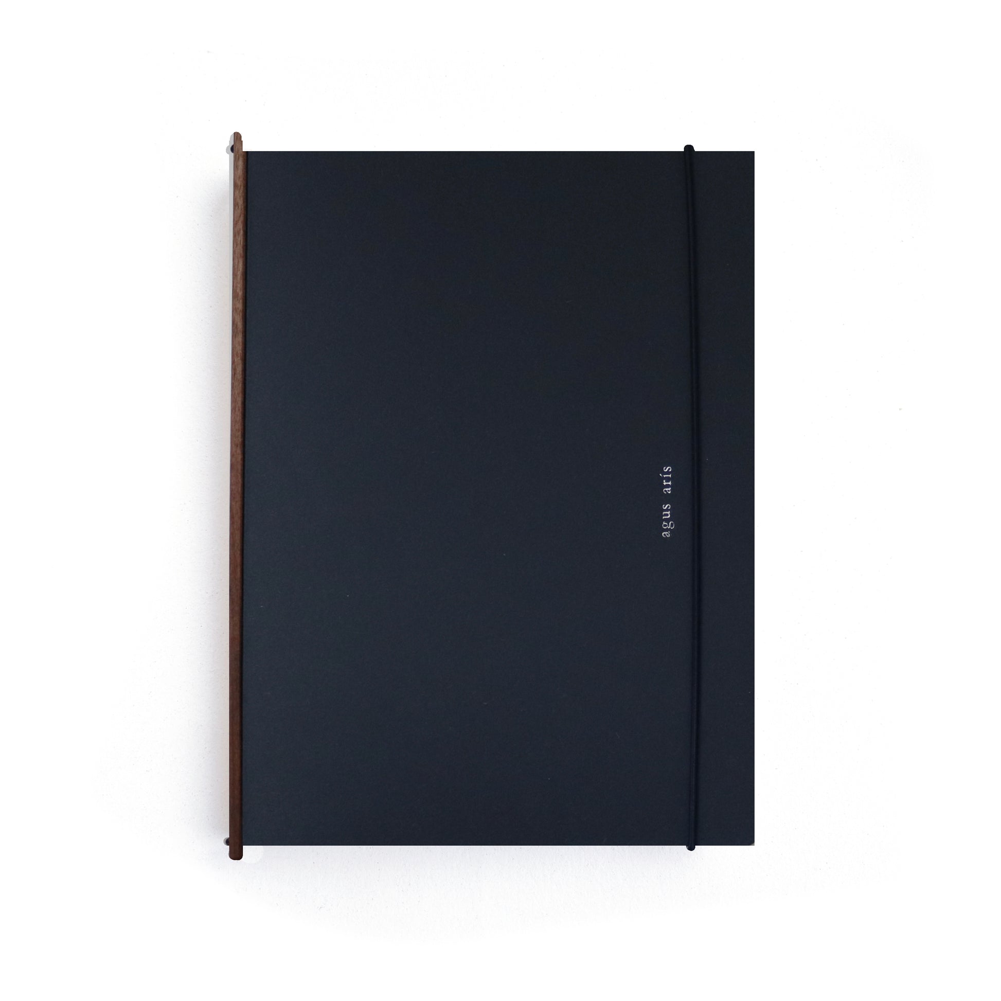 - wool black cover from Favini papers featuring recycled textile industry fibres, navy elastic